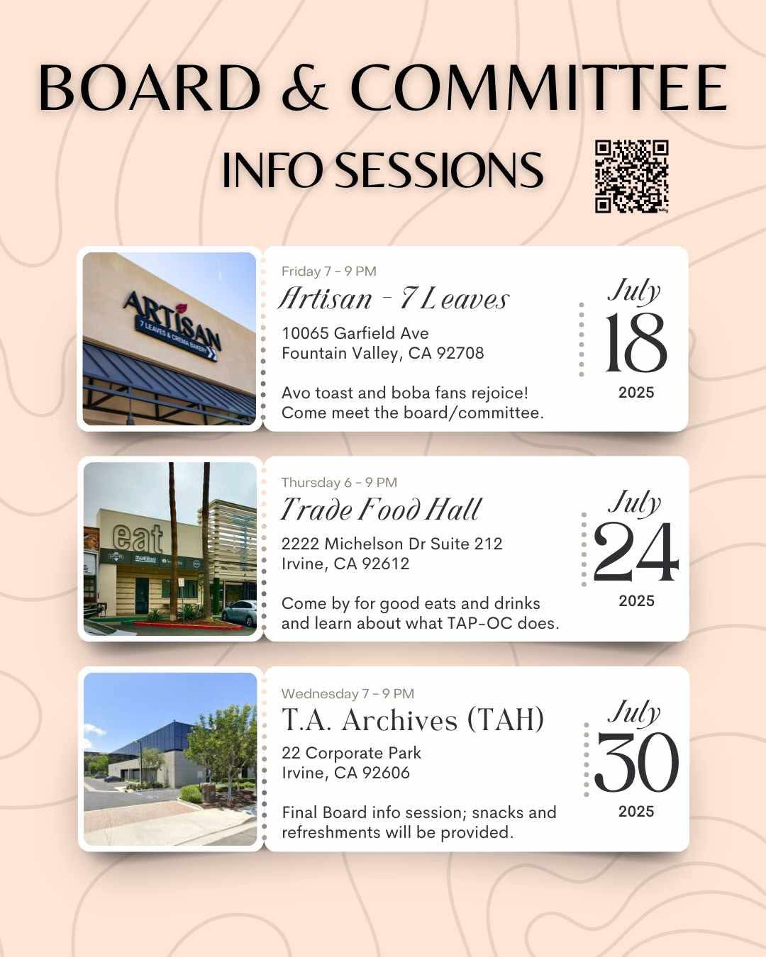 Warehouse 72 17900 Jamboree Rd, Irvine, CA, United StatesTAP-OC HAPPY HOUR is BACK! Join us for good vibes, drinks, and a night of connecting with the OC community! Whether you’re here to network, meet new friends, or just enjoy happy hour, this is THE place to be. Don’t miss it! Tag your crew, mark your calendars, and let’s make it a night to […]